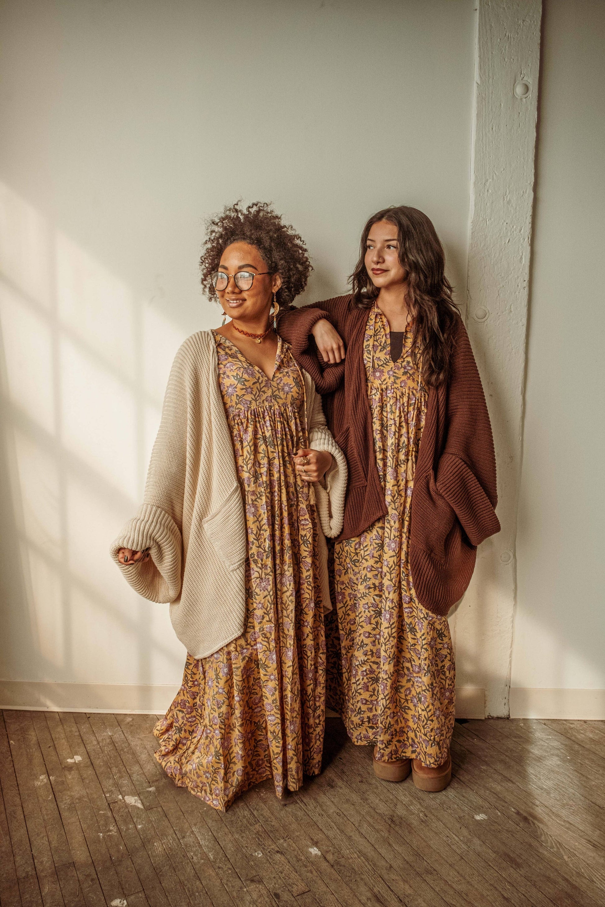 Basically an organic hug. 100% GOTS certified organic cotton, raw and undyed. Soft droopy and heavy roll-up sleeves give a gorgeous oversized boho look. Front pockets and a wrapable open-front style. 29” length