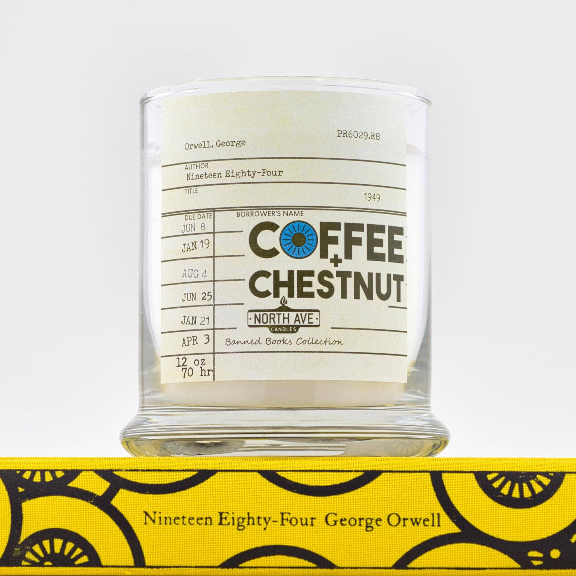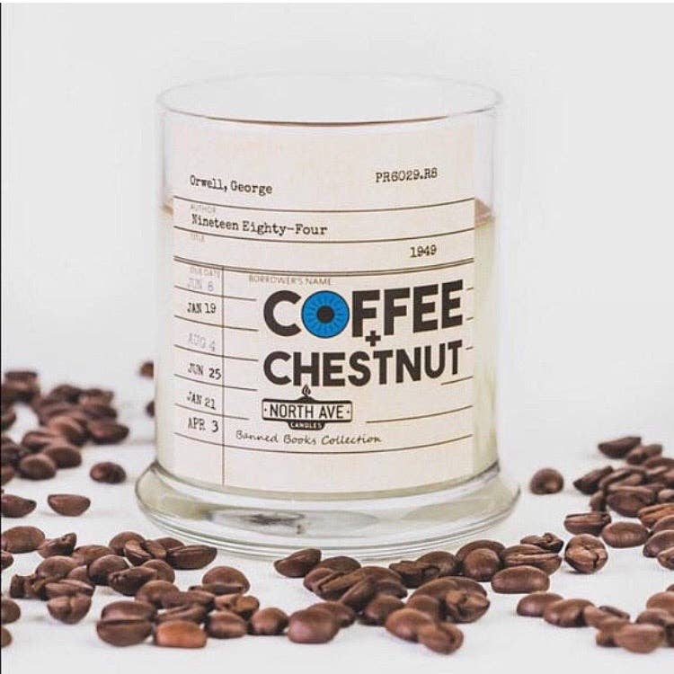 In Orwell's 1984, The Chestnut Tree Cafe is where rebels and lovers meet. This candle is for all the rebels and lovers. It blends freshly brewed coffee with the nutty scents of hazelnut and Chestnut finished off by a kiss of French vanilla.
