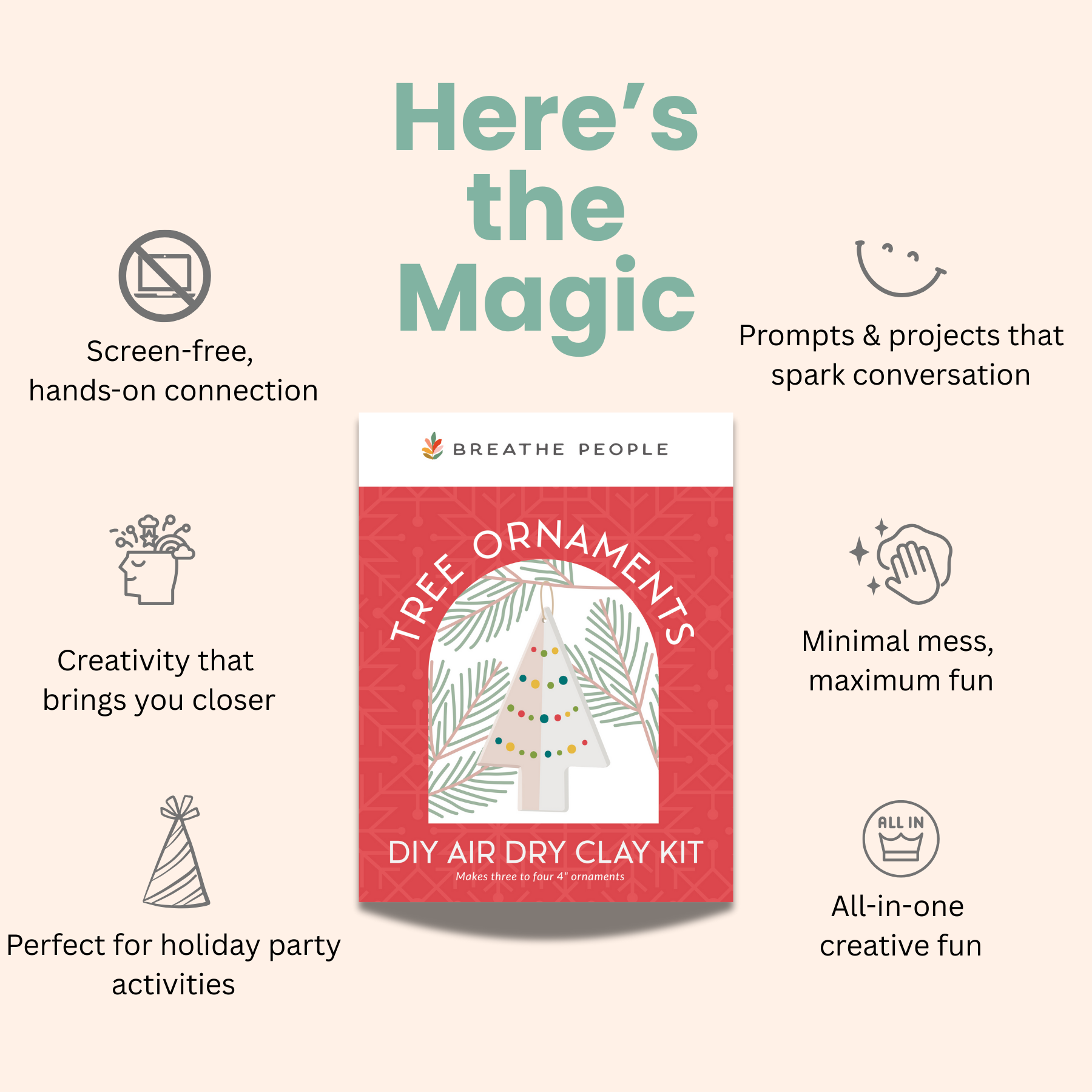 Each kit includes everything you need to craft your own set of festive ornaments—plus a deck of 10 conversation starter cards to guide you beyond small talk and into something deeper.