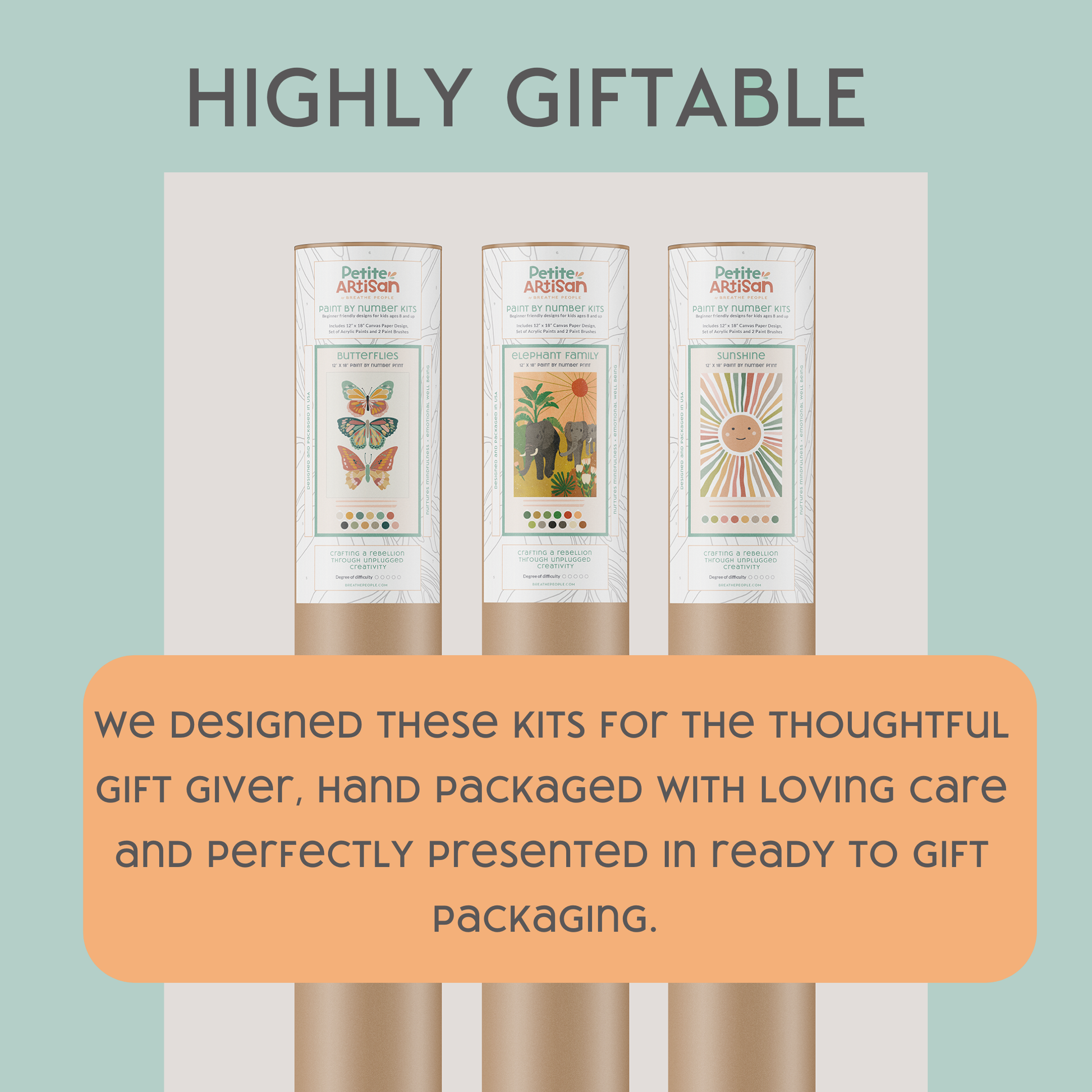 Introducing our set of two 8x8”" Paint by Numbers Kits for children, designed to unleash unplugged creativity and foster mindfulness and well-being in young minds.