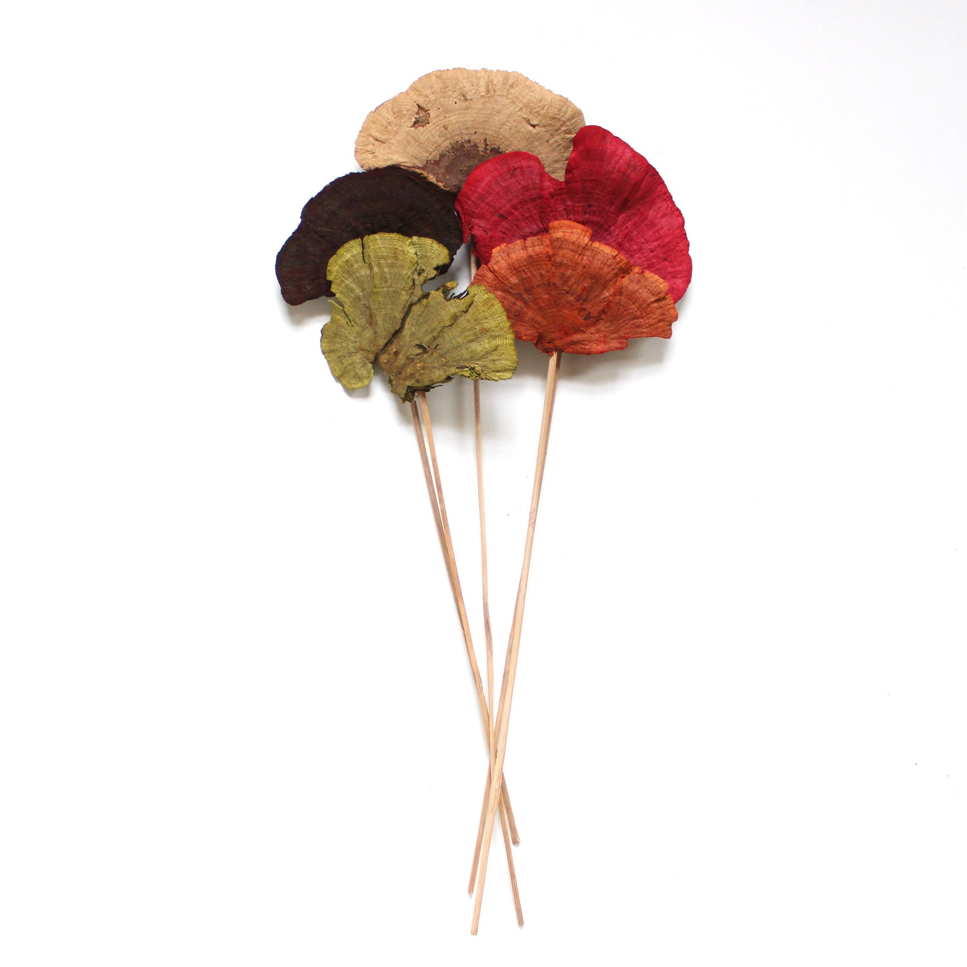 Eye catching texture and an eye catching color are the definitive traits of navy blue sponge mushrooms. Add woodsy charm to arrangements and wreath creations of your own with mushrooms that look as if they've just been picked from the forest floor. Mushrooms have been attached to reeds for arranging ease.